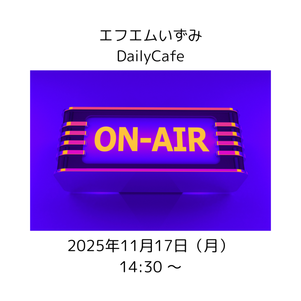 明日11/17 14:30から、エフエムいずみ《DailyCefe》に出演します。