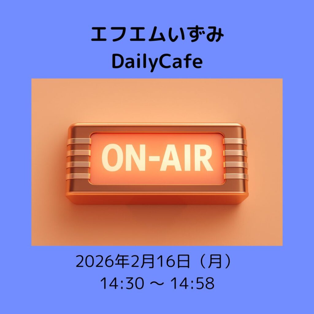 明日2/16 14:30 から 14:58 エフエムいずみ《DailyCefe》に出演します。